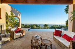 Situated in the prestigious Trousdale Estates, this one-of-a-kind Mediterranean architectural gem captures the sophistication and serenity that define Beverly Hills hillside living. Privately set on coveted Carla Ridge, this custom-remodeled single-story residence offers four bedrooms and five baths, thoughtfully designed to highlight its sweeping panoramic city views and exceptional privacy.The home welcomes with warm Mediterranean character, generous ceiling heights, and an inviting floor plan that blends elegant living spaces with updated finishes throughout. Large picture windows frame stunning city vistas and fill the interiors with natural light, enhancing both everyday living and effortless entertaining. The remodeled kitchen and common areas provide comfortable flow, while the bedroom suites are well-appointed for relaxation and privacy. Outside, the property delivers the true Trousdale experience serene views, mature landscaping, and multiple areas for lounging and dining, all set against the dramatic backdrop of the city skyline. An opportunity to own a distinct, custom-crafted Mediterranean home in one of Beverly Hills' most coveted enclaves. Available for lease! 1 year or short term for a higher price.